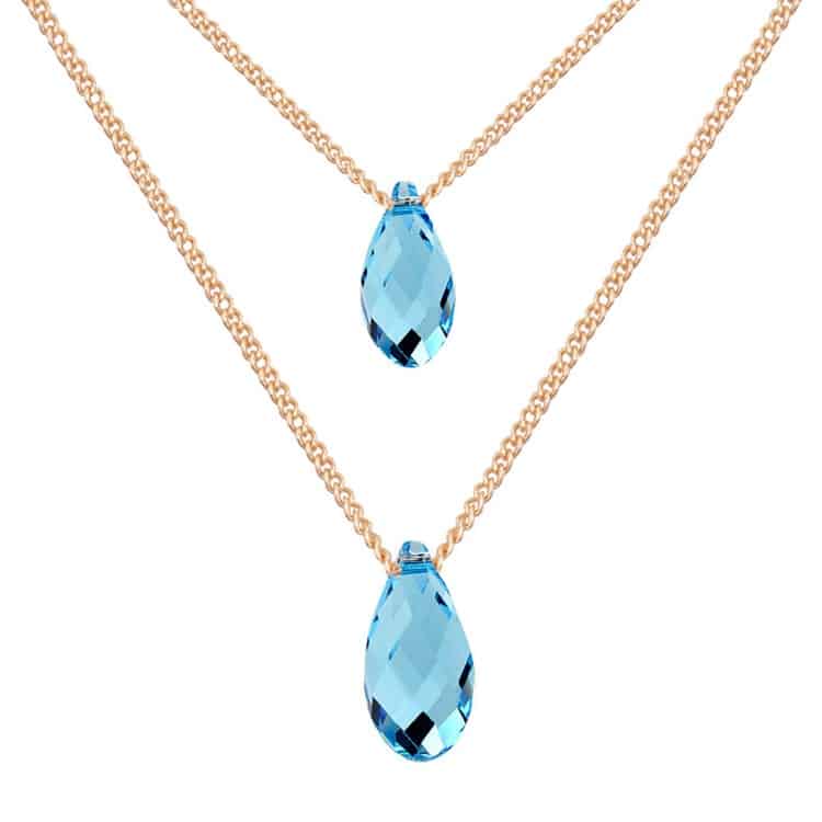 19 reviews for Gold Plated Double Waterdrop Necklace with Swarovski Crystals | Blue, Gold, Lilac, White